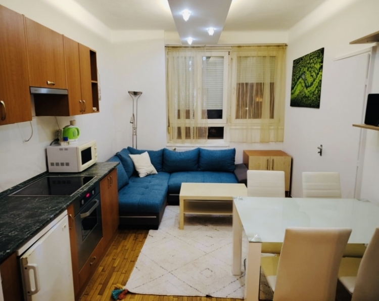 Elrendezése kiváló, minden helyiség az előszobából nyílik. Egy tágas nappali amiből kiléphetünk az erkélyre, hálószoba, fél szoba, egy konyha étkezővel, külön fürdő, Wc.