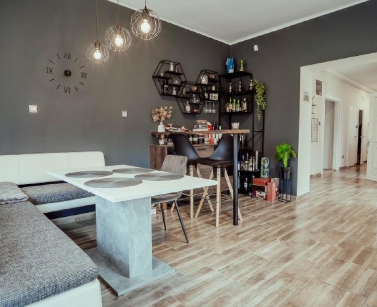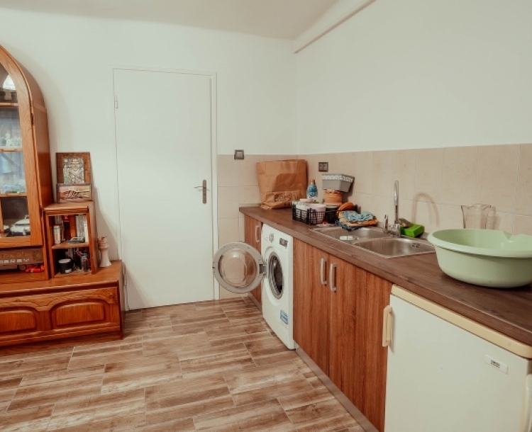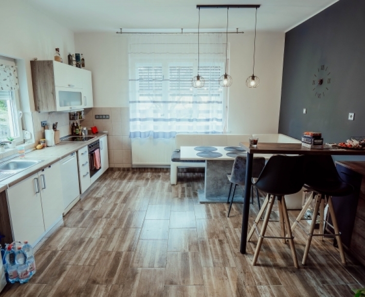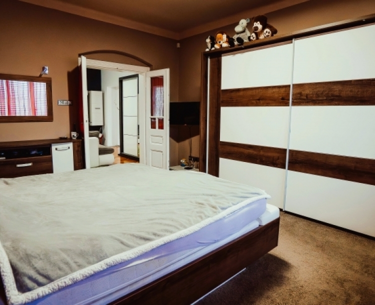 Pécs-Kertváros egyik kedvelt, csendes családi házas részén eladó egy teljes körűen felújított, önálló családi ház, amely kialakításának köszönhetően akár két külön lakrészként is használható. Főbb adatok – Nettó lakótér: 140 m² – Telek: 249 m² – Fedett terasz + fedett kocsibeálló + kert – Belmagasság kb. 280 cm – Önálló, utcafronti elhelyezkedés Felújítás és műszaki tartalom – Teljes gépészeti és elektromos felújítás – Új szigetelések – Új gáz-cirkó kazán, radiátoros fűtés minden helyiségben – Légkondicionáló a nappaliban és a hálószobában Belső elrendezés – Tágas, egy légtérben kialakított nappali–konyha–étkező – Nagyméretű hálószoba + külön félszoba (dolgozó vagy gyerekszoba) – Külön fürdőszoba és külön WC – Közlekedőről nyíló, szinte teljesen önálló lakrész saját konyhapulttal és külön bejárattal – Légkondicionált hobbi- / műhelyhelyiség, padlásfeljárattal Külső terek – 36 m²-es fedett terasz – Kb. 30 m²-es fedett kocsibeálló – Kb. 50 m²-es díszkert (rózsakert + kavicsos rész) A ház stabil, régi építésű, vastag téglafalakkal, kiváló hőszigeteléssel. Külön helyrajzi számmal és házszámmal rendelkezik, a lekerítés jelenleg folyamatban van. Elhelyezkedés – Belváros: 8–10 perc autóval – Buszmegálló: kb. 150 méterre Ajánlott – Családoknak – Kétgenerációs együttélésre – Otthon + vállalkozás céljára – Befektetőknek Ha egy jól átgondolt, rugalmasan használható családi házat keresel Kertváros egyik legjobb részén, egyeztessünk időpontot és nézd meg személyesen!