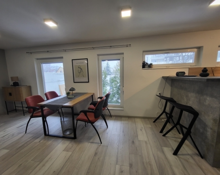 Hosszú távra kiadó modern lakás Pécsett, a Zsolnay Kulturális Negyed közelében! Pécs egyik kedvelt részén, a Zsolnay Kulturális Negyed és a Művészeti Kar közvetlen közelében hosszú távra kiadó egy modern kialakítású, kétszobás lakás, 2 fedett autóbeállási lehetőséggel és saját udvarhasználattal. Az ingatlan egy vegyes rendeltetésű épület belső, udvari részén, az 1. emeleten található, csendes és nyugodt környezetben. A lakás elrendezése praktikus és kényelmes: - tágas, világos nappali-konyha-étkező egy légtérben - külön hálószoba - teljesen felszerelt, gépesített konyha - fürdőszoba különnyíló WC-vel A bérleményhez tartozik egy két autó számára alkalmas autóbeálló, valamint egy kb. 200 m2-es, zöld növényekkel, fákkal és kavicsos résszel kialakított belső udvar, amely kiváló lehetőséget biztosít kertészkedésre, pihenésre vagy grillezésre. A környék infrastruktúrája kiváló: buszmegálló, bolt és benzinkút rövid sétával elérhető. Ideális választás legénylakásnak vagy egy igényes pár számára. Bérlés feltétele: 2 havi kaució. Csendes környezet, modern otthon, kiváló elhelyezkedés - költözzön be gondtalanul!
