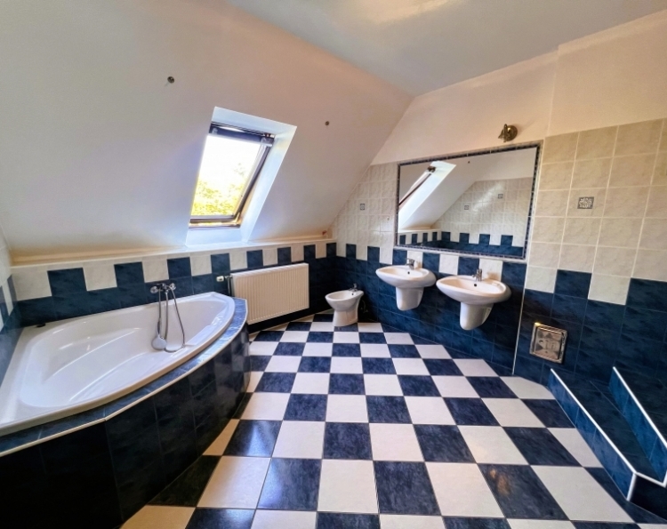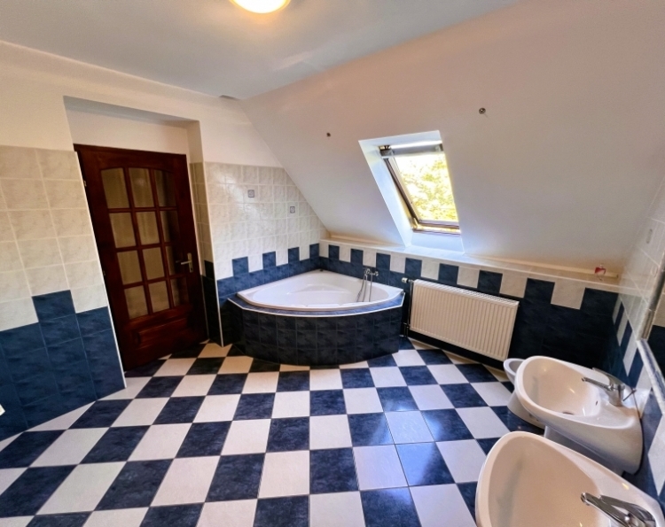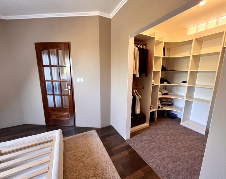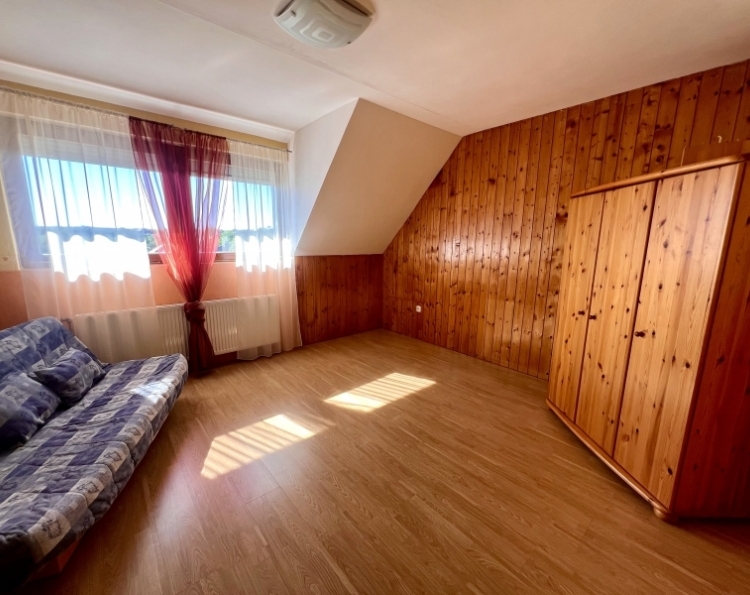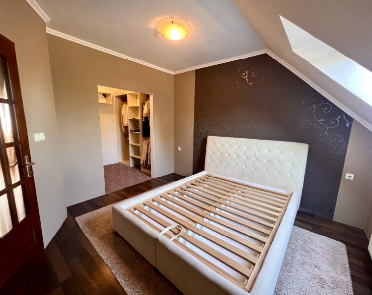 Eladásra kínálunk Pécs-Kertváros Málomi részén egy 150 m2-es, belső két szintes, 4+1 fél szobás családi házat. Az ingatlan 267 m2-es sík telken fekszik, egy csendes, nyugodt zsákutcában. 1997-ben épült, kiváló állapotú. É-D-i fekvésű, így rendkívül világos. Nagyon praktikus elrendezésű, minden helyiség külön-külön nyílik. Az alábbi helyiségek találhatók meg bent: Földszint: szélfogó, előszoba, ahonnan nyílik egy fürdőszoba+ WC, a félszoba, illetve a szuterén lejárat. Külön ajtóval van elválasztva a tágas amerikai konyhás nappali+ étkező, ahonnan fa lépcsőkön juthatunk fel az emeletre. A nappaliból egy 20 m2-es teraszra illetve a kb. 100 m2-es udvarra léphetünk ki. Emelet: közlekedő, fürdőszoba, WC, 3 külön nyíló szoba, illetve a hálóból nyíló gardrób. Műszaki leírás: A ház 38-as porotherm téglából épült 1997-ben, mely lyukacsos szerkezetű, így kiváló hőszigetelő tulajdonsággal bír. Dupla üvegezésű fa nyílászárók lettek beépítve, melyek redőnnyel és szúnyoghálóval vannak ellátva. A beltéri ajtók és a bejárati ajtó szintén fából készültek. A tetőtéri ablakok mindegyike Velux. A betonfödém perlites, mely kiváló hőszigetelő. A fűtést gáz-cirkó kazán biztosítja, szabályozható radiátorokkal. Parkolni a garázsban és az udvarban lehetséges, de a ház előtt, közterületen is, mely ingyenes. Ajánlom olyan családoknak, akik a város zajától távol csendes, nyugodt környéken szeretnének élni! További kérdés és megtekintés esetén keressen bizalommal!