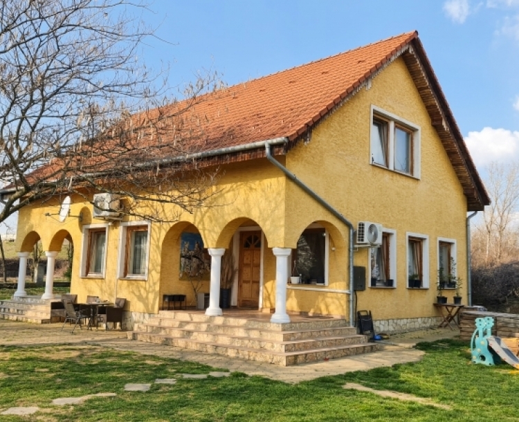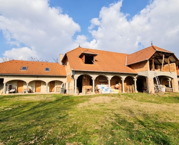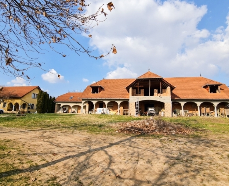 Pécs Üszög városrészében, aszfaltos úton megközelíthető területen kínálunk megvételre egy közel 6 hektáros birtokot, rajta két jelentős méretű épülettel. A telken áll egy kb. 600 m² alapterületű befejezetlen épület, és egy 160 m2-es családi ház. A nagyobbik épületet eredetileg lovas panziónak tervezték. Az épület szerkezete és tetőszerkezete elkészült, azonban a befejezés az új tulajdonosra vár: a falak jelenleg nyers tégla állapotúak, a nyílászárók még nem kerültek beépítésre. A birtokon található másik nagyobb épület egy 6 szobás, 160 m2-es, kétszintes családi ház. Az épület kívülről jó állapotú, belső tere részben felújítandó, így az új tulajdonos saját igényei szerint alakíthatja. A házban villany rendelkezésre áll, a vízellátás kútról történik, a szennyvíz emésztőbe kerül elvezetésre. Vezetékes víz és gáz bevezetése megoldható. A fűtést vegyes tüzelésű kazán biztosítja padlófűtéssel, a nyári komfortot három klímaberendezés segíti. Mindkét épület 2007 körül épült, ezeken felül több istálló is található, amik felújítható vagy bontandó állapotúak. A közel 6 hektáros terület jelentős része szabadon hasznosítható. Az ingatlan mérete és a meglévő épületek miatt számos fejlesztési irányban gondolkodhat a leendő tulajdonos, például: - lovas központ, lovas turizmus - panzió, rendezvényhelyszín - szabadidős vagy élménypark - paintball, airsoft, lasertag - különböző pályák kialakítása (pl. gokart, quad, terepmotor) - gazdálkodás, farm jellegű hasznosítás A nagy kiterjedésű terület és a két jelentős méretű épület ritka lehetőséget kínál azoknak a befektetőknek, akik saját elképzeléseik szerint szeretnének fejlesztési projektet megvalósítani Pécs közelében. További információért és megtekintésért keressen bizalommal!