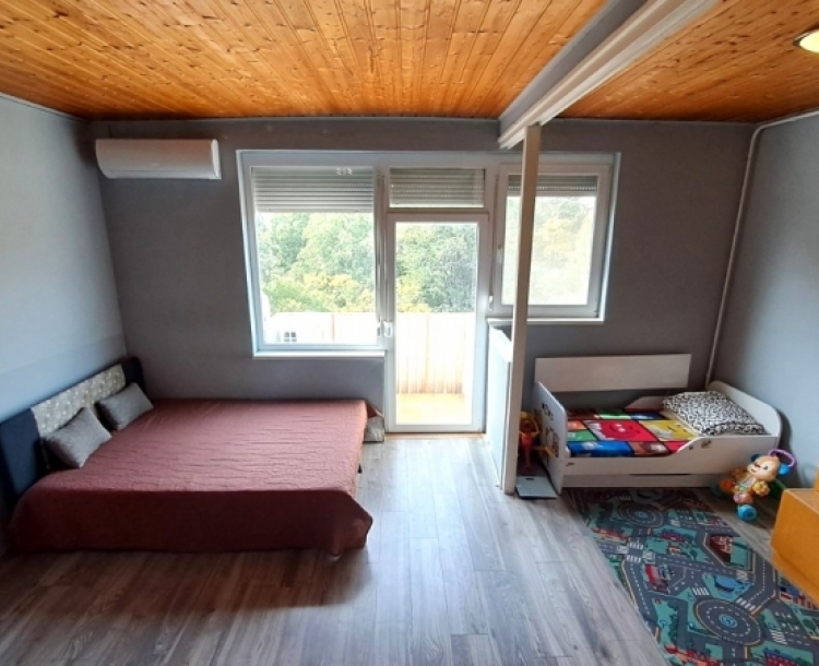 Pécs - Uránvárosban, a Bánki Donát utcában egy 4/3. emeleti felújított és átalakított ERKÉLYES tégla lakás eladó! A lakás 39 m2 alapterületű, egy 4 emeletes tégla társasház 3. emeletén található, nyugati fekvésű, világos. Az ingatlan 5 évvel ezelőtt teljesen felújításon esett át, ennek során a víz és villanyvezetékek is cserélve lettek, az áramhálózat 32 amperre való bővítése is megtörtént. A fűtés is korszerűsítésre került. A gázkonvektorok meg lettek szüntetve és helyette egy hűtő fűtő klíma szolgáltatja a fűtést, továbbá egy elektromos fűtőpanel is beépítésre került. A H tarifa is be lett kötve, ennek köszönhetően kedvezőek a fenntartási költségek. A lakás átalakításra is került, így jóval praktikusabb lett az elrendezése. A konyha tágasabb, nyitottabb lett, a fürdőszoba eredetileg a szobából is és a konyhából is megközelíthető volt, de jelenleg csak a szobából nyílik, így jobban elkülönül. A nagyszoba méretéből és kialakításából adódóan egy külön szoba leválasztására is alkalmas lehet, így lenne egy külön hálószoba is. A lakáshoz egy tároló is tartozik. A lakás Uránváros központi részén található, a közelben minden szükséges kiszolgálóegység, és buszmegálló is megtalálható. Az egyetemek és a belváros 10-15 perc alatt elérhetőek. Ideális lehet akár befektetésre is. A lakás tehermentes, rövid időn belül költözhető.