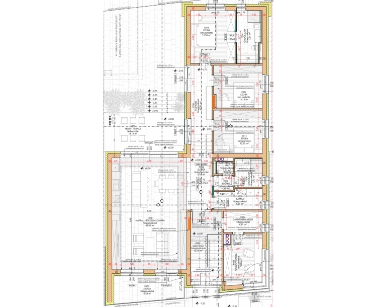 Pécs egyik legkedveltebb, nyugodt és zöldövezeti városrészében, Postavölgyben kínálunk megvételre egy modern, újépítésű családi házat. Az ingatlan átadása 2026 decemberében várható, így most még lehetősége van saját igényeire szabni a részleteket! Az impozáns, lapostetős kialakítású otthon teljes alapterülete 231 m², amely magában foglalja a lakóteret, a kényelmes dupla garázst és a fedett teraszt is. A 156 m² hasznos lakóterület egy átgondolt és praktikus elosztásban valósul meg: 2 fürdőszoba, 3 kényelmes hálószoba és egy dolgozószoba biztosítja a nyugodt privát tereket, míg a közel 50 m²-es nappali-konyha-étkező a családi élet központjaként funkcionál, ahol a tágas tér és a természetes fény különleges hangulatot teremt. Műszaki tartalom: Az ingatlan falazata a legmodernebb hőszigetelő 30-as Porotherm X-Therm Rapid téglából készülnek 15cm szigeteléssel. A ház lapostetős kialakítású, vasbeton födémmel. A fűtést hőszivattyú padlófűtéssel, a hűtést klímák biztosítják H tarifás működéssel. A mindig friss levegőt a hővisszanyerős szellőző rendszer biztosítja. Nyílászárói 3 rétegű antracit színű ablakok, elektromos redőnyökkel ellátva. Ez a ház a legmodernebb építészeti és gépészeti megoldásokat ötvözi, melyek egyszerre biztosítják az alacsony fenntartási költségeket és a maximális kényelmet. Ideális választás mindazoknak, akik prémium minőségű, újépítésű otthont keresnek.