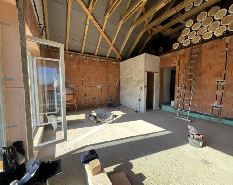 Eladó Pécstől 13km-re, Magyarsarlóson, gyönyörű környezetben egy 2025-ben épült 105m2-es családi ház. Az összközműves telek mérete 1210m2, melynek az alsó határánál egy patak csörgedezik. Észak-déli fekvésű, így rendkívül világos. Az ingatlan nagyon jó elosztású, átgondolt tervezés és tágas terek jellemzik. Minden helyiség külön nyílik. Helyiséglista: - előszoba - közlekedő - tágas nappali-konyha-étkező, ahonnan nyílik egy 24m2-es terasz. Innen csodálatos erdőre néző panoráma tárul elénk. - kamra - háztartási helyiség - 2 fürdőszoba + WC - 3 külön nyíló szoba Műszaki leírás: - 30-as porotherm okostéglából épült - a homlokzat 15cm-es grafitos, a födém 30cm-es kőzetgyapot szigetelést kapott - műanyag 3 rétegű szigetelt nyílászárók kerültek beépítésre, kiállás adott az elektromos redőnyöknek - a födém 30cm-es kőzetgyapot szigetelést kapott - fűtése gáz-cirkó padlófűtéses hőleadással - 4KwH teljesítményű napelem - hűtő-fűtő klíma A jelenlegi állapotában a megadott összegben még választhatók hideg-, illetve melegburkolatok, szaniterek és beltéri ajtók. Az ingatlan ára tartalmazza a hideg-, melegburkolatokat, szanitereket, beltéri ajtókat, 1 klímát a nappaliban, illetve a festést. Minden szobában megvan a klímának a kiállás. Ha vágyik arra, hogy egy újépítésű házban, csendes, jó közösségű, kis lélekszámú faluban éljen, ahol reggelente a madárcsicsergésre kelhet, és a ház teraszáról őzöket csodálhat, akkor ez egy tökéletes választás lehet. A ház egy zsákutcában található, így nincs rajta átmenő forgalom. Pécs autóval 15 percre elérhető. További kérdés és megtekintés esetén keressen bizalommal!