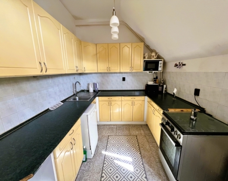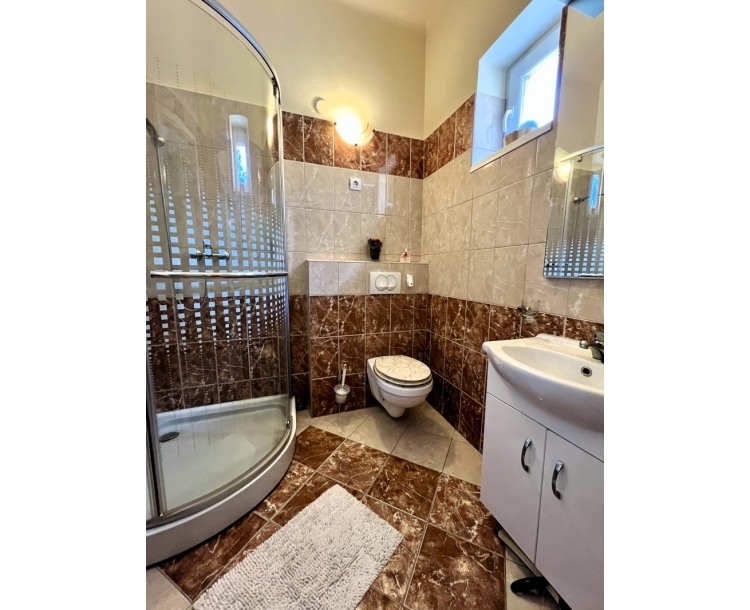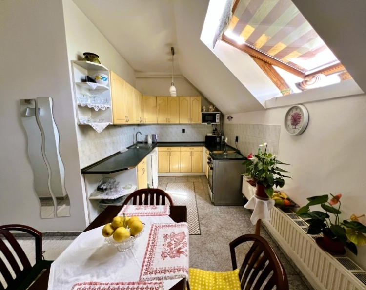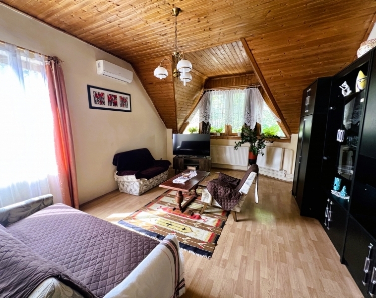 Eladásra kínálunk Pécsen a Budai városrészben egy 150m2-es, belső kétszintes 4 szobás családi házat 477m2-es udvarral. Az alsó szint korábbi építésű, későbbi ráépítéssel került rá a felső szint. Alsó szint helységlista: előszoba, konyha, ahonnan nyílik egy kamra, egy fürdőszoba+ WC, illetve két szoba. Felső szint: előszoba/lépcsőház, ahonnan nyílik a konyha+ étkező, fürdőszoba+ WC, két szoba. Jelenleg a felső szintet lakják, az alsó rész, mely különálló lakrész vendégek számára van fenntartva. Az ingatlan az évek során számos felújításon esett át. Az alsó szinten a nagyobb szoba kivételével kicserélték a az ablakokat műanyag nyílászárókra, a bejárati ajtó cseréje is megtörtént. A fürdőszoba új burkolatot kapott, a szobákban laminált padló került lerakásra. A tető 40 cm -es szigetelést kapott, illetve a ház külső szigetelése is megtörtént, így rendkívül kedvező a rezsije. Fűtése az alsó szinten gázkonvektorral történik, a felső szinten gázkazánnal fűtenek, a melegvizet az alsó szinten villanybojler, az emeleten pedig vadonatúj gázbojler biztosítja. A felső szint klimatizált. Parkolni a nyitott garázsban, illetve az udvaron lehetséges, ahol több autó is elfér. Az udvaron egy fúrt kút is található. A vételár tartalmazza a berendezést is. Az ingatlan tehermentes, és a vételár megfizetését követően rövid időn belül birtokba vehető. Rendkívül jó az elhelyezkedése, minden kiszolgáló egység pár perc gyalogtávra elérhető. Kérdés és megtekintés esetén keressen bizalommal!