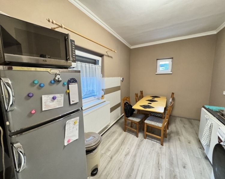 Siklós központi részén eladó egy 101,5 m2- es, 4 szobás, erkélyes, téglaépítésű családi ház, mely egy 394 m2- es telken helyezkedik el! Az ingatlanhoz tartozik még egy 15 m2- es garázs és egy 20 m2 -es melléképület is (nyárikonyha és tároló). A ház jó állapotú, részben felújított. Villamos hálózata réz vezetékekkel felújított, éjszakai áram is van a villanybojlernek. Nyílászárói és a szobák burkolatai is ki lettek cserélve! Fűtését vegyes tüzelésű kazán biztosítja. Helyiségei: Nappali, 3 hálószoba, konyha + étkező, előszoba és közlekedők, fürdőszoba, külön wc és egy kis lépcső alatti takarítószer tároló. Erkély az emeleti hálószobából nyílik. Szuper választás családoknak a megfelelő számú és külön nyíló szobái miatt is! Amennyiben felkeltette érdeklődését, keressen bizalommal!