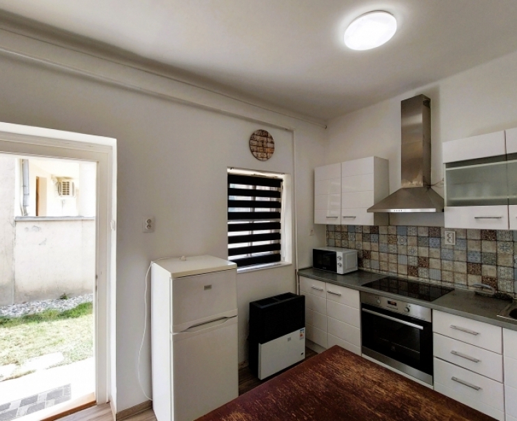 Kiadó családi házrész Pécs belvárosában – zárt udvarral, parkolóval, terasszal! Pécs belvárosában, az Alkotmány utcában – az egyetemek közvetlen közelében – kiadó egy 50 m²-es, teljesen bútorozott és felszerelt, különálló családi házrész. Az ingatlan egy hálószobából, amerikai konyhás nappaliból, galériából és fürdőszobából áll, valamint tartozik hozzá egy 20 m²-es privát terasz és egy 185 m²-es zárt udvar, ahol saját parkolási lehetőség is biztosított. A terasz és a kert tökéletes helyszín lehet reggeli kávézáshoz, esti borozgatáshoz vagy baráti grillezéshez is. A ház frissen felújított, azonnal költözhető, alacsony rezsivel fenntartható – a fűtést két külön szabályozható gázkonvektor biztosítja, a meleg vizet villanybojler adja. Kizárólag maximum 2 fő részére (egyetemisták vagy fiatal pár), háziállat nem hozható. Kiváló lokáció: a közelben találhatóak boltok, iskola, óvoda, orvosi rendelő, gyógyszertár, valamint jó a tömegközlekedés és a kerékpáros közlekedés lehetősége is. Bérleti díj: 195.000 Ft/hó + rezsi Kaució: 2 havi díj Költözhető: azonnal Ha szeretnél a belvárosban élni saját udvarral és terasszal, hívj bizalommal a megtekintésért!