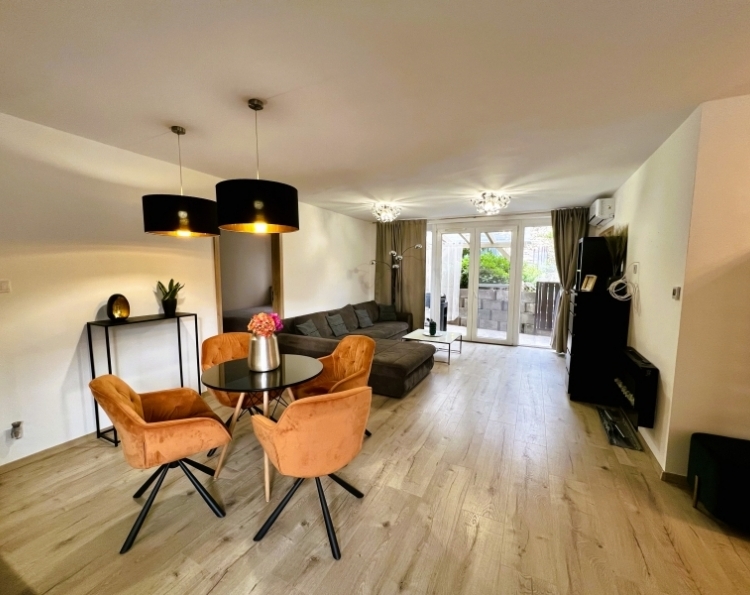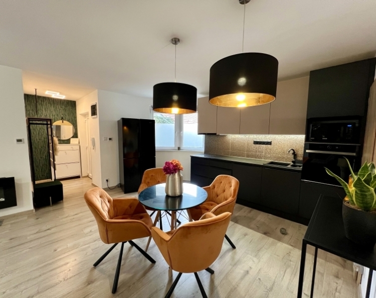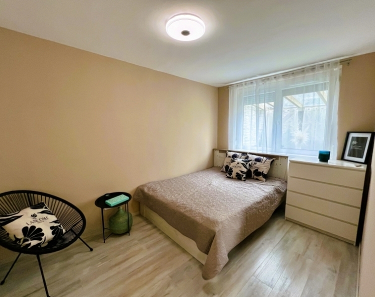 Eladóvá vált Pécs belvárosában egy 59 m2-es, 2+1 félszobás, földszinti felújított téglalakás. Az öt lakásos társasház 2006-ban épült, melyek közül ez az egyetlen, amelyik saját használatú, elkerített udvar résszel rendelkezik, ami ügyvéd által készített dokumentumban van rögzítve. Az alábbi helyiségek találhatók meg bent: előszoba, amerikai konyhás nappali+ étkező, fürdőszoba, melyből nyílik egy WC, két külön nyíló szoba. A nappaliból juthatunk ki a 15 m2-es részben fedett teraszra. Az ingatlan teljes felújításon esett át, melynek során prémium minőségű anyagokat használtak. Ki lettek cserélve a villany-, vízvezetékek, a bejárati ajtó, a beltéri ajtók, új burkolatokat kapott a fürdőszoba, a nappali-konyha-étkezőben és a szobákban laminált lap került lerakásra. A konyhabútor szintén magas minőségű anyagokból, egyedi tervezéssel készült. A lakás melegét elektromos padlófűtés adja, melyhez 5 termosztát tartozik, mindegyik külön-külön wifiről vezérelhető, így minden helyiség tetszés szerinti hőmérsékletre állítható. A melegvizet szintén wifis Ariston villanybojler adja. A nyári melegről pedig egy hűtő-fűtő klíma gondoskodik. A gáz bármikor visszaköthető. Az udvaron található egy mobil tároló, valamint a garázsban is rendelkezésre áll egy kisebb helyiség, ami tárolásra alkalmas. Parkolni az udvarban lévő lakáshoz tartozó 17m2-es garázsban lehet, melynek ára 10 000 000 Ft, kizárólag lakással együtt eladó. Az ház előtt, illetve az utcában díjmentes a parkolás. Az ingatlan tehermentes, a vételár megfizetését követően azonnal birtokba vehető. Nagyon jó a lakás elhelyezkedése, hiszen minden kiszolgáló egység pár perc gyalogtávra elérhető. Széchenyi tér 10 perc, PTE-Jogi és Közgazdaságtudományi kar 5 perc séta. Ajánlom fiatal pároknak, családoknak, vagy akár befektetésre is kiváló választás lehet. További kérdés és megtekintés esetén keressen bizalommal!