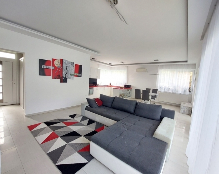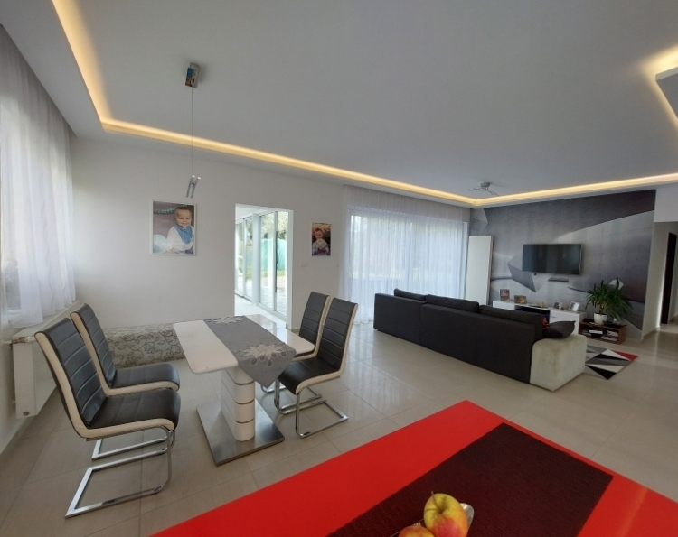 Eladó újszerű-modern, napelemes-energiatakarékos családi ház Harkányban! Harkány csendes, nyugodt részén, egy forgalomtól mentes zsákutcában kínálunk eladásra egy 2020-ban épült, 220 m²-es, tégla építésű, modern családi házat. Az ingatlan egy 1500 m²-es telken helyezkedik el, és egy 35 m²-es, kétállásos garázs is tartozik hozzá, amelyből egy 8,4 m²-es kazánház nyílik. A ház újszerű állapotban van, korszerű technológiával épült, energiatakarékos megoldásainak köszönhetően pedig hosszú távon is alacsony rezsivel fenntartható. Az ingatlan elrendezése átgondolt, praktikus és kényelmes. Három világos, tágas szoba található benne, melyek közül kettőben külön beépített gardróbszoba kapott helyet. Két modern, igényesen kialakított fürdőszoba szolgálja a kényelmet: az egyikben épített zuhany, a másikban nagyméretű kád található, mindkettőben WC is helyet kapott. A tágas nappali, a konyha és az étkező egy légtérben helyezkedik el, a konyhából kamra, a közlekedőből háztartási helyiség nyílik. A garázs közvetlenül kapcsolódik a házhoz, ami rendkívül kényelmes a mindennapokban. A ház korszerű műszaki felszereltséggel rendelkezik: a 5 kW-os napelemes rendszer jelentősen csökkenti az energia költségeket, a fűtésről hőszivattyús rendszer gondoskodik, de fatüzelésű kazán is rendelkezésre áll alternatív megoldásként. A kiváló hőszigetelés, a kiépített közművek, valamint a minden nyílászárón elhelyezett elektromos zsaluzia növelik a komfortot és a biztonságot. A fürdőszobák padlófűtéssel, a ház klímával felszerelt, a biztonságról kamerarendszer gondoskodik, a belső terekben pedig minőségi burkolatok kerültek beépítésre. Az ingatlan tökéletes állapotú, azonnal költözhető, így új tulajdonosa rögtön birtokba veheti. A környék rendezett, nyugodt, barátságos lakókörnyezet jellemzi. Harkány Magyarország egyik legismertebb fürdővárosa, ahol a híres gyógyfürdő, a kiváló infrastruktúra és a természet közelsége ideális életteret biztosít mind családok, mind befektetők számára. A mindennapi élethez szükséges üzletek, éttermek, iskola, óvoda, orvosi rendelő és gyógyszertár néhány perces távolságban megtalálhatók, a buszközlekedés rendszeres és jól szervezett, így autó nélkül is könnyen elérhetők a környező települések. Pécs mindössze 25 km-re, Siklós 6 km-re, míg a horvát határ körülbelül 6 km-re található, így a város elhelyezkedése közlekedési és életminőségi szempontból is rendkívül kedvező. Ha modern, energiatakarékos és értékálló otthont keresel, ahol a minőség, a nyugalom és a korszerű technológia találkozik, ezt az ingatlant mindenképpen érdemes megnézned! Azonnal költözhető, igényes otthon Harkány egyik legjobb részén! Ne hagyd ki ezt a kivételes lehetőséget! Ügyvédi háttér és teljes körű hitelügyintézés biztosított, így a vásárlás gördülékenyen és biztonságosan lebonyolítható. Hívj bizalommal és tekintsd meg személyesen.