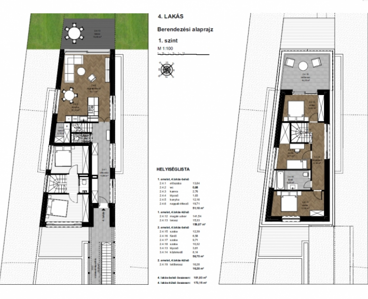 Pécs - Mecsekoldal fekventált, belvároshoz közeli részén, a Surányi Miklós úton luxus lakások eladók! A 4 db lakásból még 2 db érhető el. A liftes társasházban kialakításra került egy teremgarázs illetve nagy méretű tárolók. Minden lakáshoz saját szauna és jacuzzi tartozik. A lakások alumínium nyílászárókkal, elektromos zsalúziával és szúnyoghálóval, modern fűtési rendszerrel (mennyezeti és padlófűtés) lesznek felszerelve. A rendszer központi szellőztetéssel, helyiségenként szabályozható hőmérséklettel és páratartalommal egészül ki. A hirdetésben szereplő lakás a társasház 3. számú lakása: (belső kétszintes): 51,18 m2 a fsz-en (előszoba, nappali, étkező, konyha, kamra, wc) + az emeleten 50,75 m2-en (3 hálószoba + fürdőszoba, közlekedő). Privát kert: 142m2, 2 db terasz: 15,33 illetve 16,28 m2 A tárolók és a 7 db teremgarázs beálló a lakásokhoz külön megvásárolhatók. Érdeklődés esetén kérem hívjon bizalommal!
