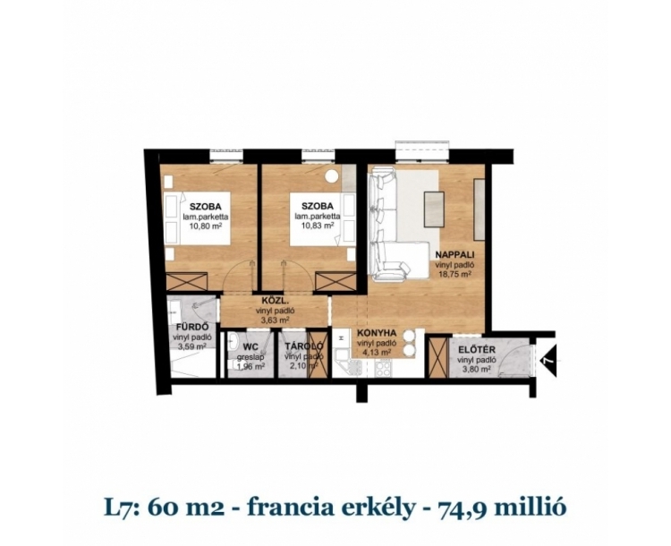 Újonnan épülő 10 lakásos társasházban eladó egy 2. emeleti 60 m2-es két hálószobás, francia erkélyes lakás. Kiváló elrendezésű, minden helyiség külön nyílik. Elosztása: előszoba, 2 külön nyíló szoba, fürdőszoba, WC, nappali, konyha+ étkező, tároló. Az előszoba, a tároló, a fürdőszoba és a nappali+ konyha vinyl padló, a szobák laminált parketta, a WC pedig greslap burkolatot kap. Műszaki leírás: - 30-as porotherm téglából épül, 12 cm külső hőszigetelést kap az épület - nyílászárók középszürke színű fa, homlokzati nyílászárók kerülnek beépítésre, 3 rétegű hőszigetelő üvegezéssel. - központi fűtés, melyet fűtést-hűtést is biztosító hőszivattyú biztosít. Az alacsony hőmérsékleten működő hűtő – fűtő rendszer felületi hőleadással kerül kialakításra, padló-mennyezetfűtéssel nyáron mennyezet hűtéssel, mely helyiségenként szabályozható. A zárt udvarban parkolóhely vásárolható, mélygarázs 7M Ft, felszíni parkoló 4M Ft. Remek elhelyezkedésének köszönhetően pár perc séta a Jogi -és Közgazdaságtudományi egyetem, és a Király utca. 200 méteren belül elérhető orvosi rendelő, gyógyszertár, éttermek, boltok. Befektetésre is kiváló lehetőség. Várható átadás 2026.12.31. További kérdés esetén keressen bizalommal!
