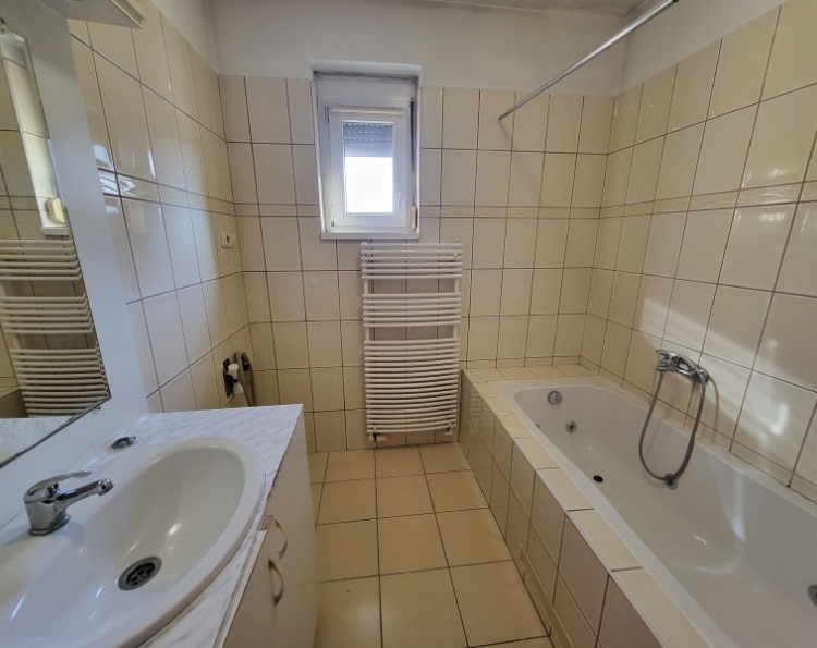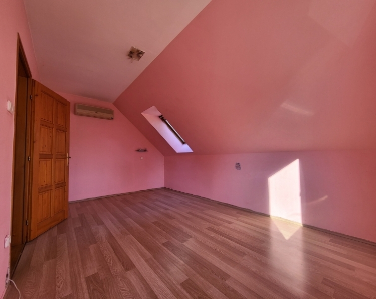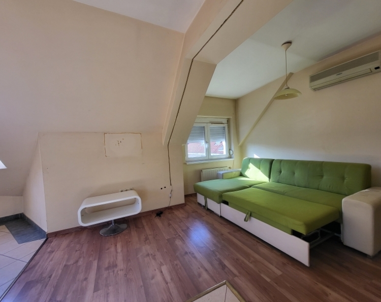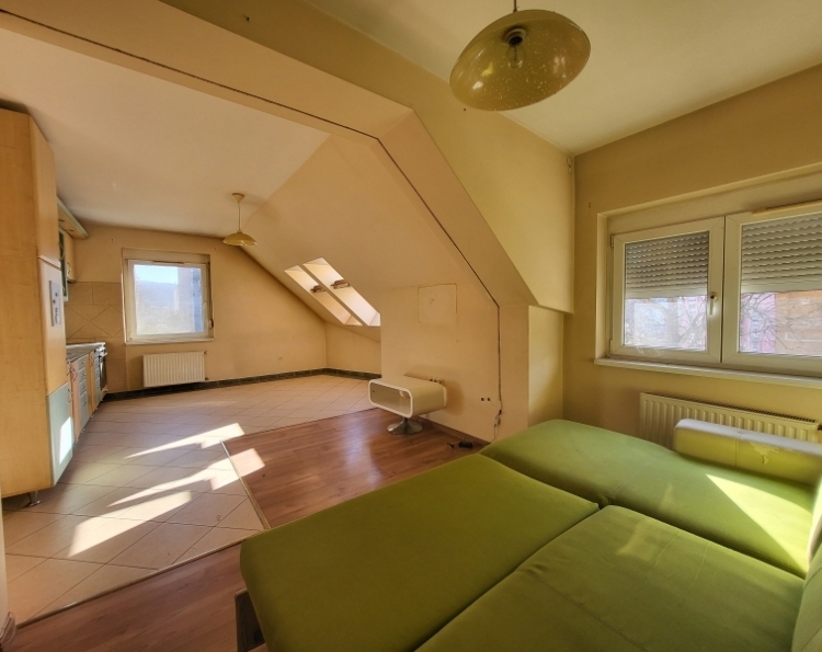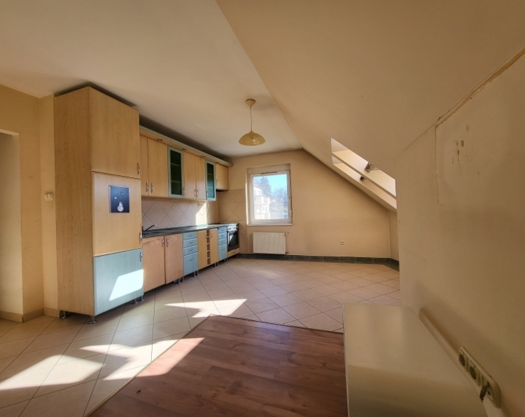 Eladó klimatizált tetőtéri lakás Komló belvárosában - Berek utca Komló belvárosában, a Berek utcában rendezett, mindössze 4 lakásos lépcsőházában eladó egy második emeleti (tetőtéri), téglaépítésű lakás, amely azonnal birtokba vehető. Az ingatlan 2003-ban épült, alapterülete 46 m2 (tetőtérben 54 m2), jól bútorozható, klimatizált, és egyedi méréses távfűtéssel rendelkezik. Helyiségek: 29 m-es tágas konyha-étkező-nappali 15 m-es hálószoba fürdőszoba külön WC előtér A lakás kiváló hőszigeteléssel rendelkezik: mind a ferde, mind a vízszintes vasbeton födém extra szigetelést kapott, ami kedvező rezsiköltséget biztosít. Elhelyezkedésének köszönhetően minden fontos szolgáltatás (üzletek, buszmegálló, intézmények) könnyen elérhető, mégis nyugodt környezetben található. Ideális választás első lakásnak, fiatal pároknak vagy befektetésnek egyaránt.