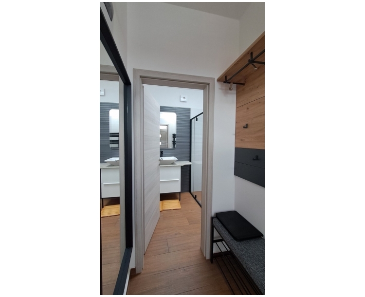 Pécs - Egyetemvárosban, az Orvosi Egyetem, BTK, TTK karok szomszédságában, az Édesanyák útján egy újszerű 2 háló + amerikai konyha nappalis modern, berendezett 1. emeleti lakás kiadó! A lakás az Orvosi Egyetem közelében, de már a belváros irányában helyezkedik el. Egy 7 lakásos újszerű társasház 1. emeletén található. Egy tágas amerikai konyhás nappalival, 2 külön nyíló szobával, zuhanyzós fürdőszobával és egy külön WC-vel rendelkezik. A lakás modern bútorokkal berendezett és gépesített. A konyhában beépített mosogató gép, hűtőszekrény, sütő, főzőlap és elszívó megtalálhatóak, a fürdőben pedig mosógép. Ezen kívül a nappaliban egy nagy méretű TV is helyet kapott. A fűtést egyedi mérős központi gázkazán szolgáltatja padlófűtésen keresztül. Ezen kívül minden szobában található egy-egy fan coil készülék, ami a hűtésért felel a nyári hőségben. Továbbá egy klíma is beszerelésre került a nappaliban. Az ablakok motoros redőnyökkel ellátottak. A lakás központi helyen található, az egyetemek mellett. A közelben éttermek, kávézó, boltok, üzletek, gyógyszertár és buszmegálló megtalálhatóak. A belváros 10 perc alatt elérhető gyalog. A lakás ideális egyetemisták és párok részére. Maximum 2 fő számára kiadó. Dohányzás és kisállat tartása nem megengedett. Igény esetén teremgarázs hely is bérelhető 70 euró/hó áron. A bérleti díj 750 euró/290.000 Ft havonta. Az aktuális havi bérleti díj + 2 havi kaució megfizetését követően azonnal költözhető, min. 1 évere kiadó.