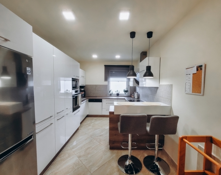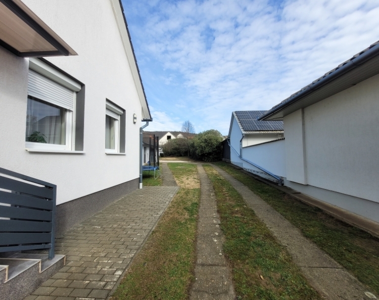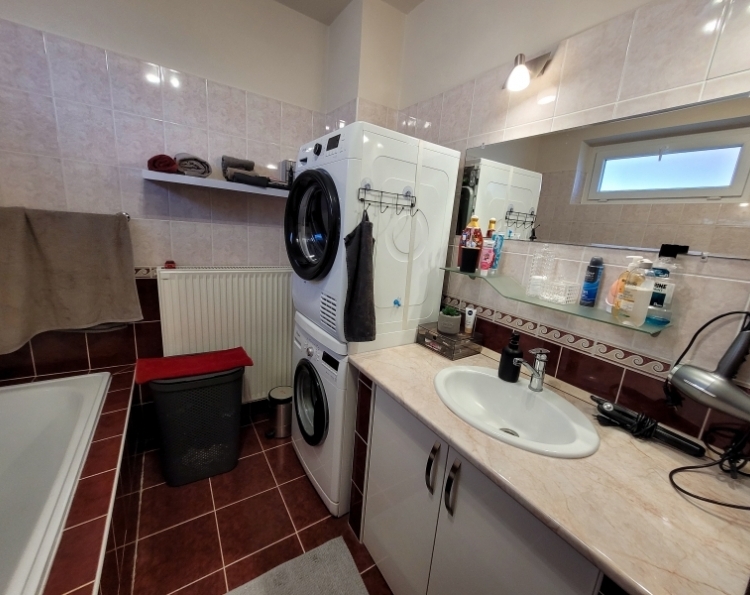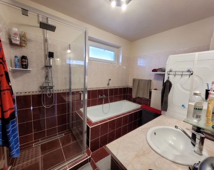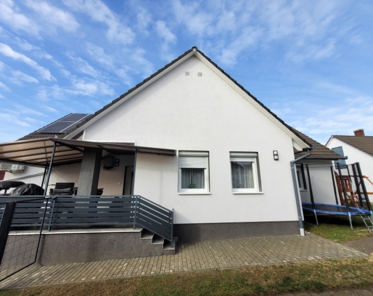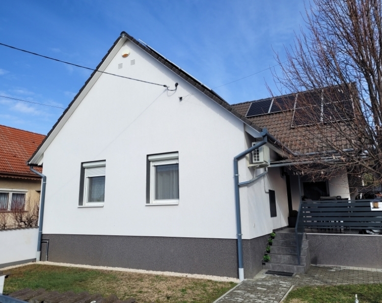 Eladó Máriagyűd egyik rendezett utcájában egy 1996-ban épült, folyamatosan karbantartott és modernizált családi ház. Az ingatlan 108 m², 3 szoba, külön WC és fürdőszoba, valamint egy tágas amerikai konyhás nappali található benne. Az épület Porotherm 38-as téglából készült, amely teljes körű homlokzati, lábazati és födém hőszigetelést is kapott, így energetikailag rendkívül stabil. Külön értéknövelő tényező a beton födém, amelynek köszönhetően a tetőtér beépíthető, így a lakótér a jövőben tetszés szerint bővíthető. Az ingatlan fenntartási költségei minimálisak, köszönhetően az 5 kW-os napelemrendszernek, amely a teljes áramfogyasztást fedezi. A rendszer 7,5 kW-ig bővíthető, és ami a legfontosabb: még 8 évig kedvező szaldó elszámolásban marad. A fűtési rendszer több lábon áll, gázkazánnal és vegyes tüzelésű kazánnal is üzemeltethető, a helyiségekben komfortos padlófűtéssel. A gépészeti kialakítás lehetővé teszi a hőszivattyús fűtésre való egyszerű átállást is. A ház hűtéséről és kiegészítő fűtéséről klímák gondoskodnak. A telken egy 32 m²-es tégla melléképület is található, amelyben egy 22 m²-es szerelőaknás garázs, valamint egy 10 m²-es tároló és kazánház kapott helyet. Az épület mögött egy statikailag előkészített, betonozott terület található, amely ideális medence elhelyezésére. Az ingatlan (beleértve az összes nyílászárót és a garázst is) teljes körű, távfelügyeletre bekötött riasztórendszerrel védett. Ez a kiváló műszaki állapotú ház ideális választás azoknak, akik értékállóságot és alacsony rezsiköltségeket keresnek. Amennyiben felkeltette érdeklődését, keressen bizalommal!
